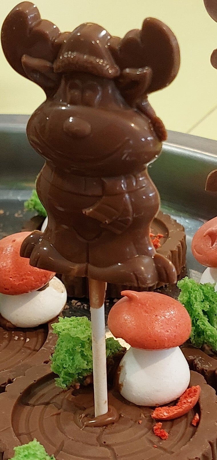 J'ai pu créer avec le thème de la forêt enchantée des souches d'arbre en chocolat, de la mousse verte et de la meringue en forme de champignons. L'idée est que chacun puisse participer, les petits comme les grands et puissent repartir avec sa création !